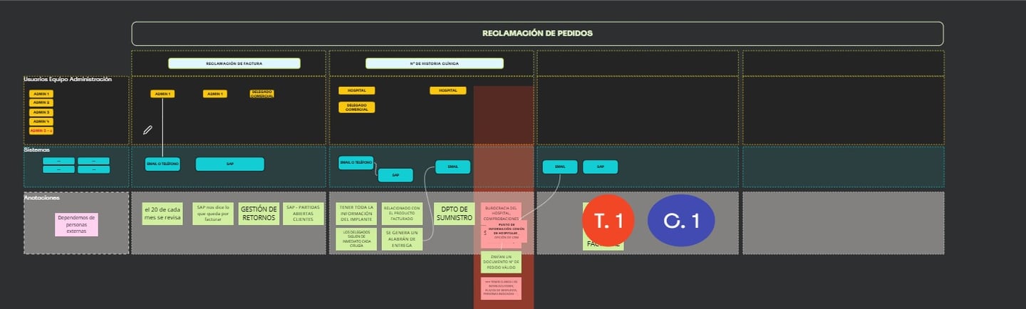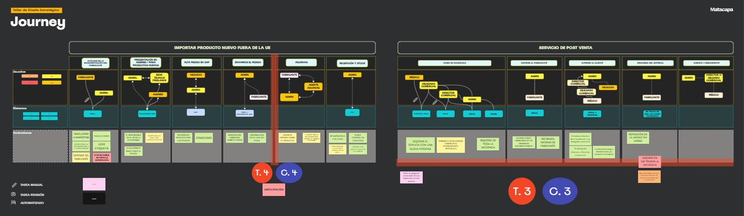 El equipo consta de cinco personas y cada proceso difiere mucho del otro. Por eso, el simple hecho de marcar el journey de cada uno de ellos, nos permite aclarar rápidamente la operativa diaria. Marcamos el paso a paso y anotamos las observaciones relevantes.