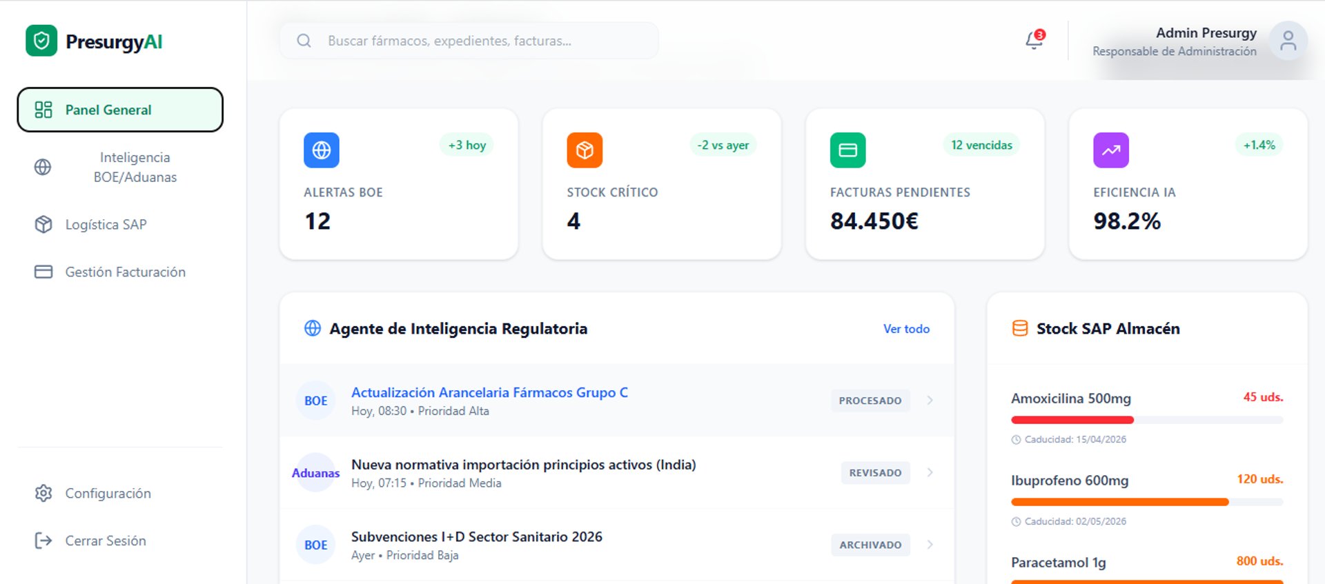 Monitorización del BOE y Diarios Oficiales: La IA procesa diariamente miles de páginas de boletines oficiales buscando palabras clave específicas (licitaciones de ortopedia, cambios en la Ley de Contratos del Sector Público, nuevas normativas de la AEMPS). Si hay algo que te afecta, recibes una alerta antes de que tu competencia sepa que el boletín se ha publicado.