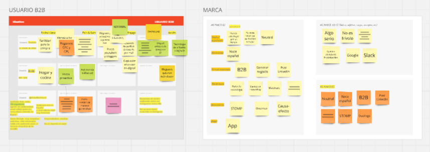 En el desarrollo de las dinámicas descubrimos que era necesario un paso en la ideación de la marca. Por lo que preparamos una sesión en la que trabajar con el cliente (esta vez sin su equipo) y facilitar el trabajo para el diseño. El objetivo en este Branding Inception era entender los elementos clave a destacar con un enfoque claro en el diseño UI de la solución.